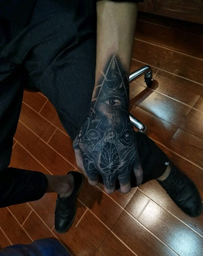 • 手背潮流时尚的玫瑰花眼睛纹身图案