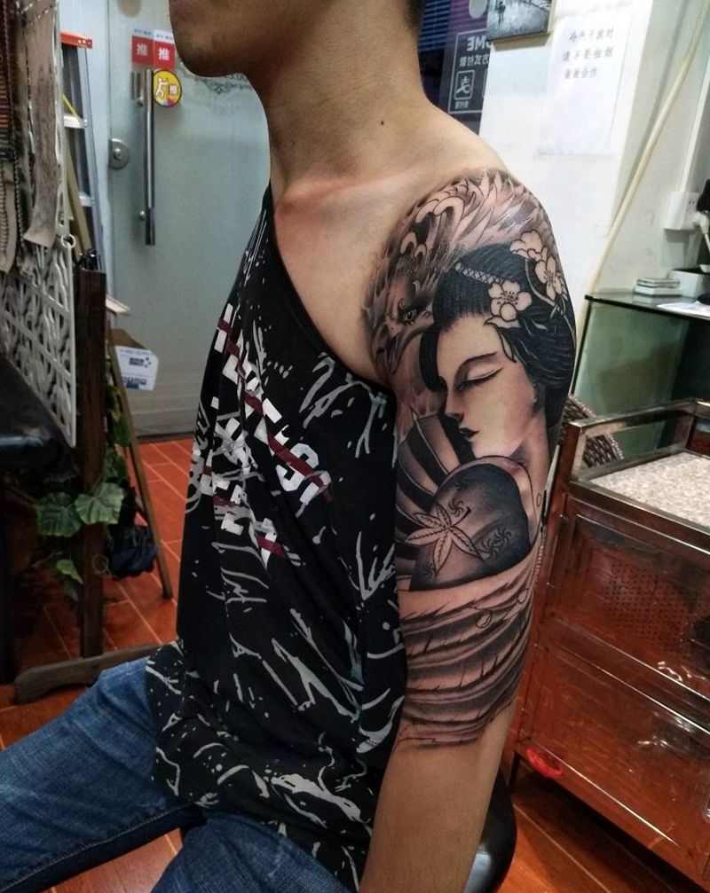• 纹身吧推荐的披肩图腾半胛纹身图案作品展示