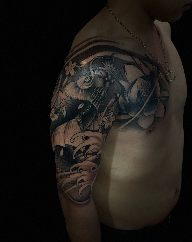 当前位置: 首页 >广西柳州市纹身店-如梦令刺青文化纹身图案>鲤鱼 -莲花 半甲