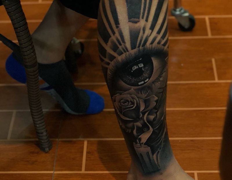 • T网红王老大花腿龙纹身图片_腿部新传统纹身图案