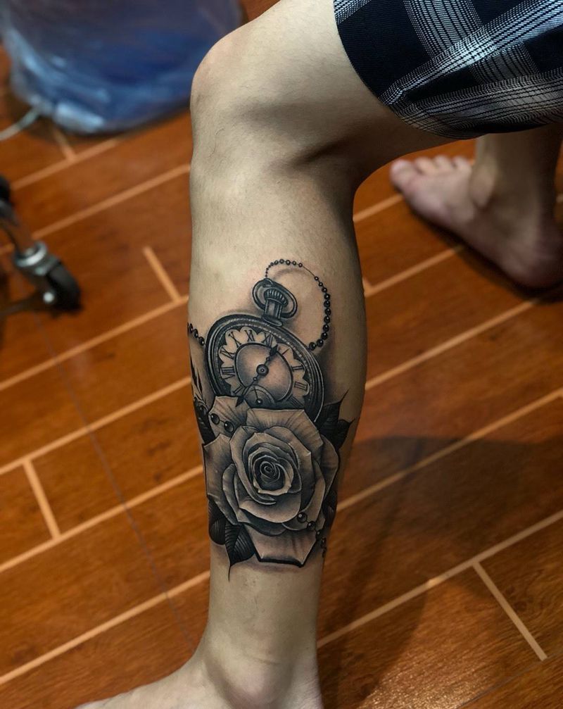 当前位置: 首页 >广西柳州市纹身店-如梦令刺青文化纹身图案>时钟玫瑰情侣纹身纹身图片