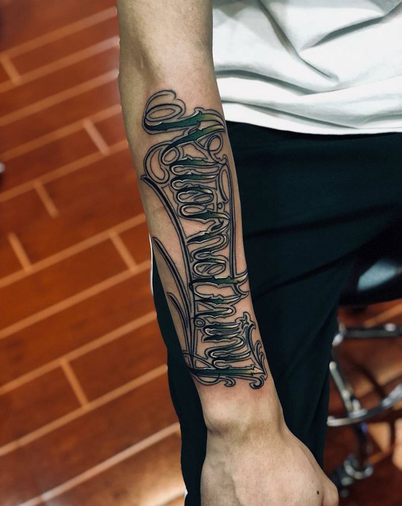 当前位置: 首页 >广西柳州市纹身店-如梦令刺青文化纹身图案>花体英文设计纹身图片