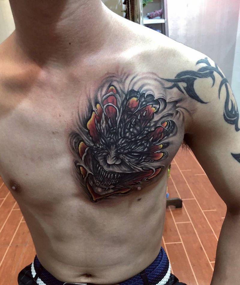 • 男性大花胸_42张优秀的男性大花胸纹身图案图片