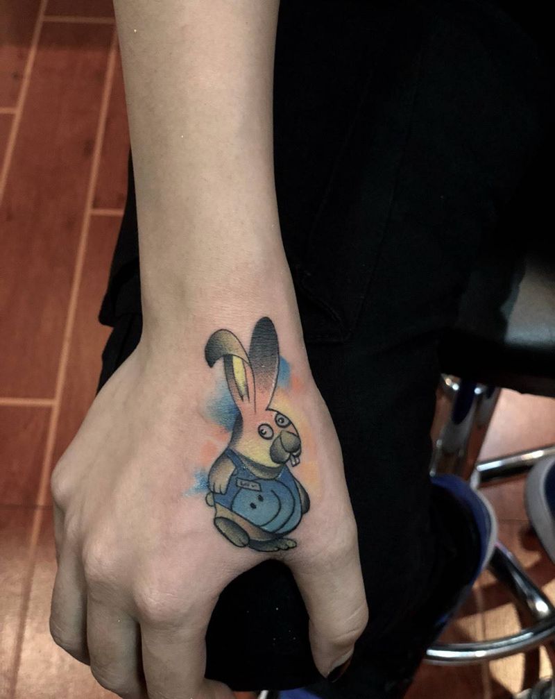 • 手背潮流时尚的玫瑰花眼睛纹身图案