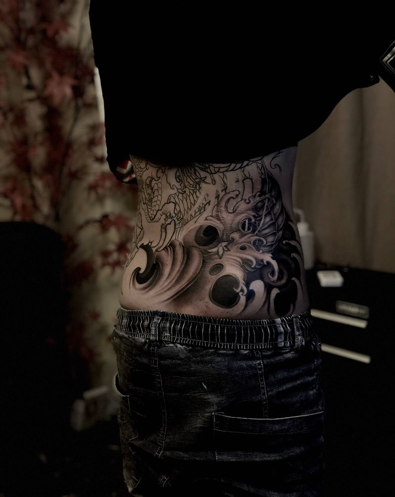 • 黑灰满背纹身图案