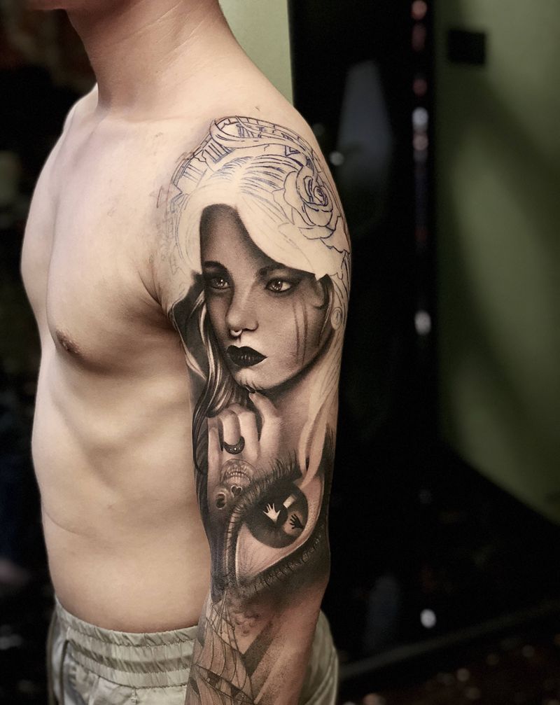 当前位置: 首页 >广西柳州市纹身店-如梦令刺青文化纹身图案>欧美写实肖像纹身图片_欧美写实纹身图案
