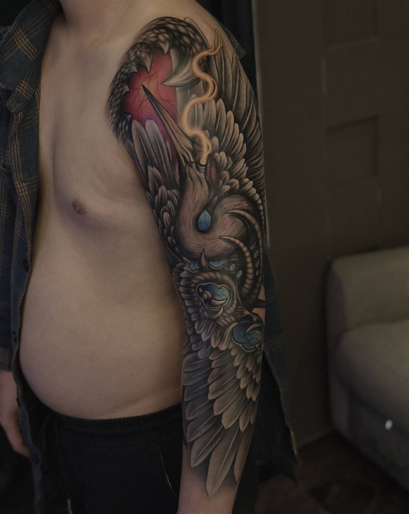 异形丹顶鹤纹身图片_手臂欧美写实丹顶鹤纹身图案