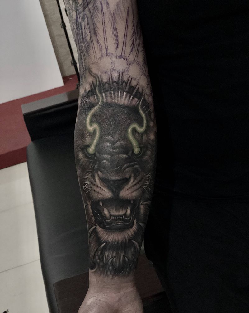 当前位置: 首页 >广西柳州市纹身店-如梦令刺青文化纹身图案>狮子纹身图片_手臂欧美写实狮子纹身图案