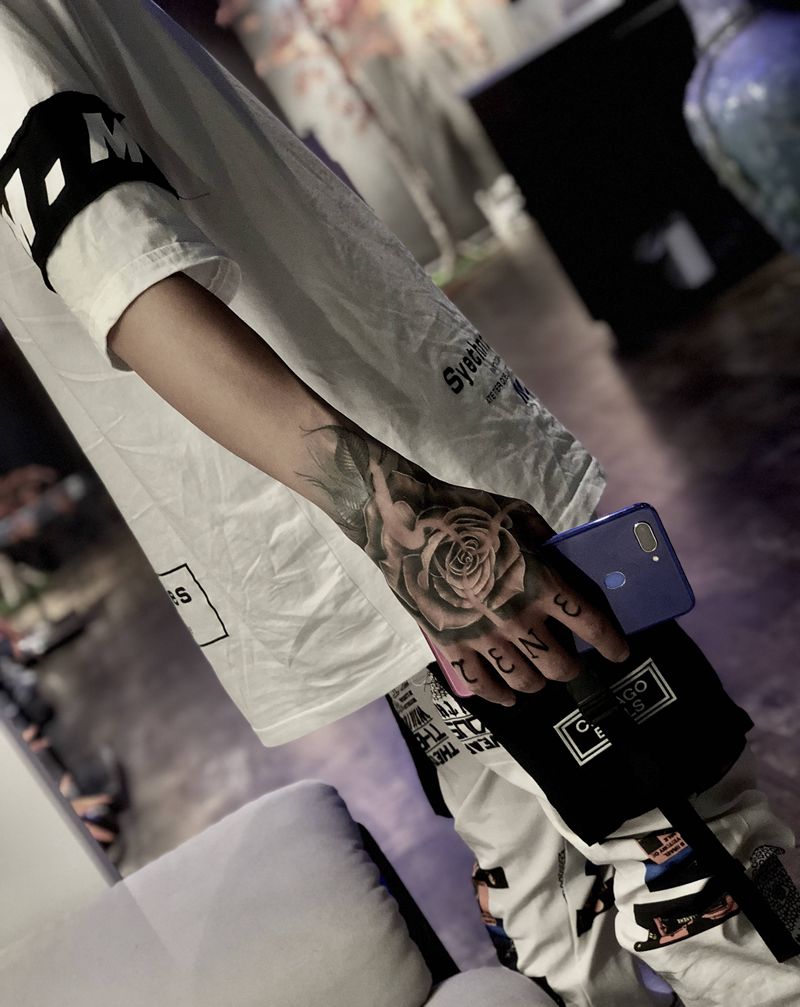 • 手背潮流时尚的玫瑰花眼睛纹身图案