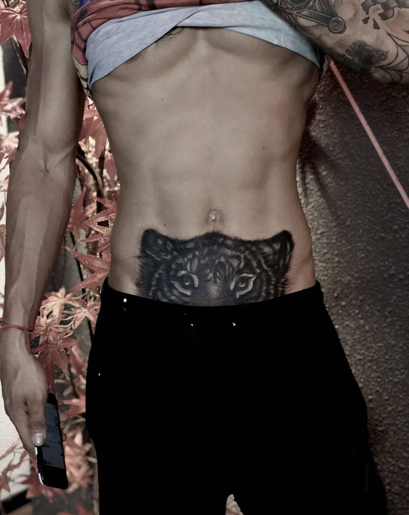 • T关于私处得爱!纹身图片_成品腹部清新字符图腾纹身图案