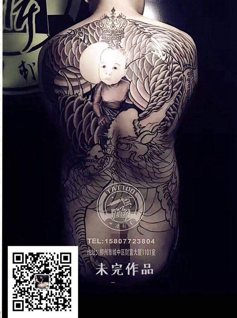 黑灰满背纹身图案