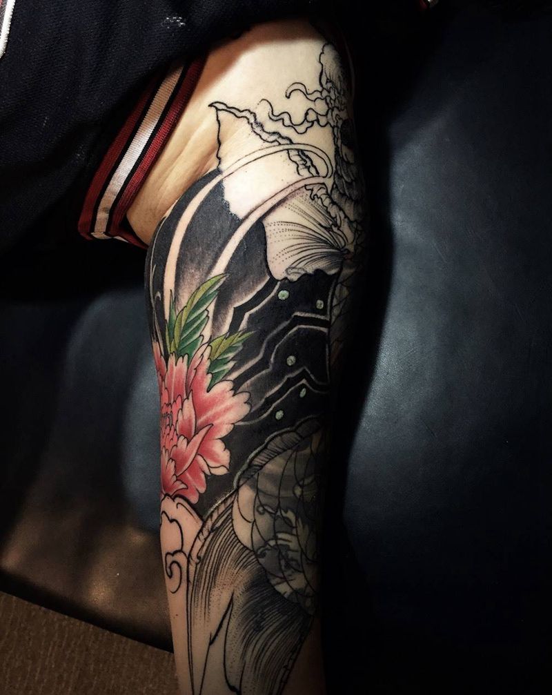 • T网红王老大花腿龙纹身图片_腿部新传统纹身图案