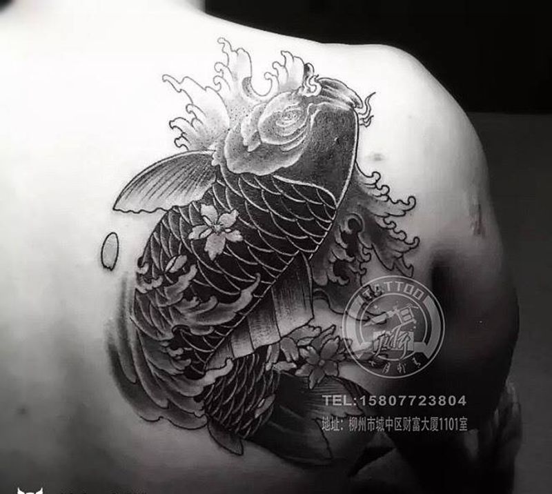 当前位置: 首页 >广西柳州市纹身店-福雕刺青纹身图案>鱼纹身图片_成品背部传统动物纹身图案