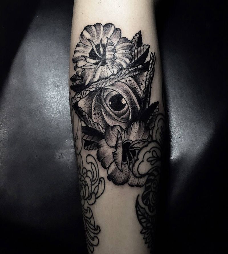 上帝之眼纹身图片_成品腿部欧美宗教七月刺青纹身图案