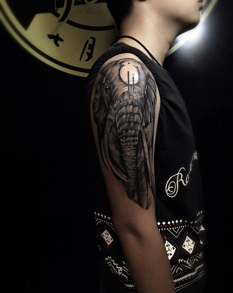 当前位置: 首页 >广西柳州市纹身店-福雕刺青纹身图案>象纹身图片_成品动物手臂欧美纹身图案
