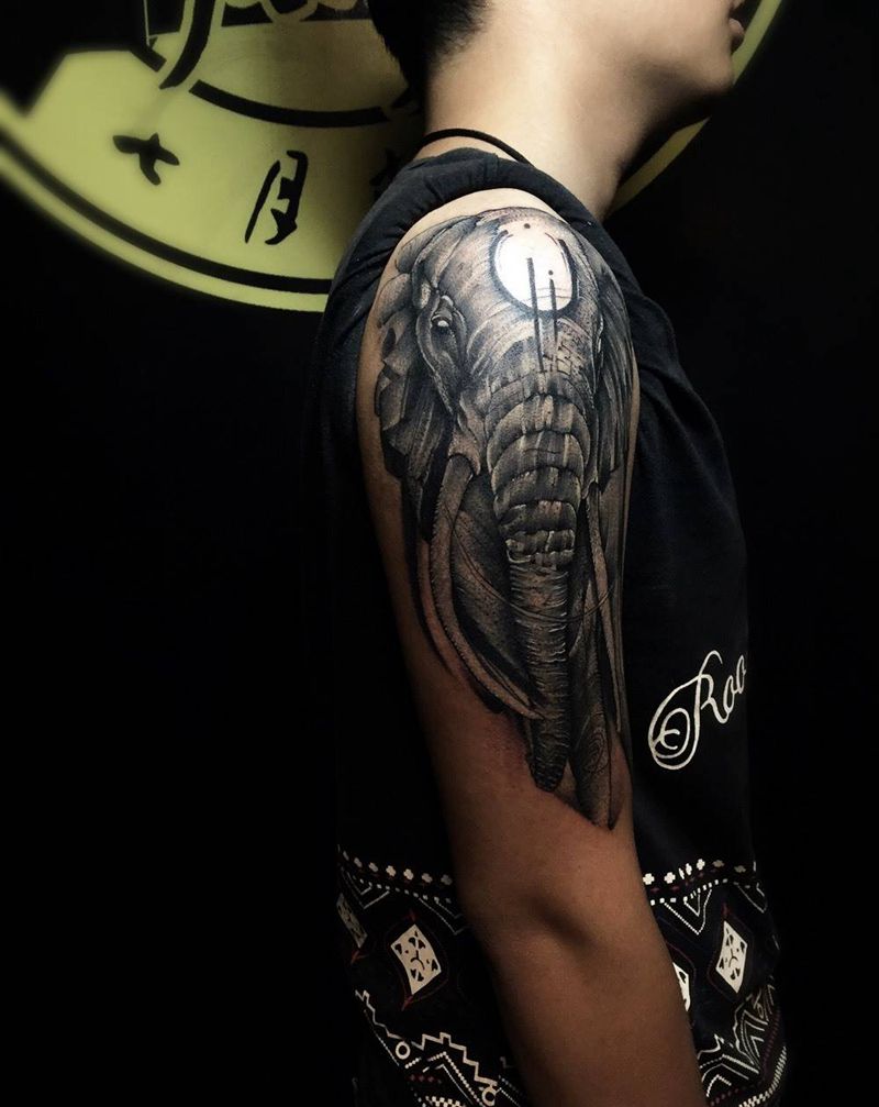 当前位置: 首页 >广西柳州市纹身店-福雕刺青纹身图案>象纹身图片_成品动物手臂欧美纹身图案