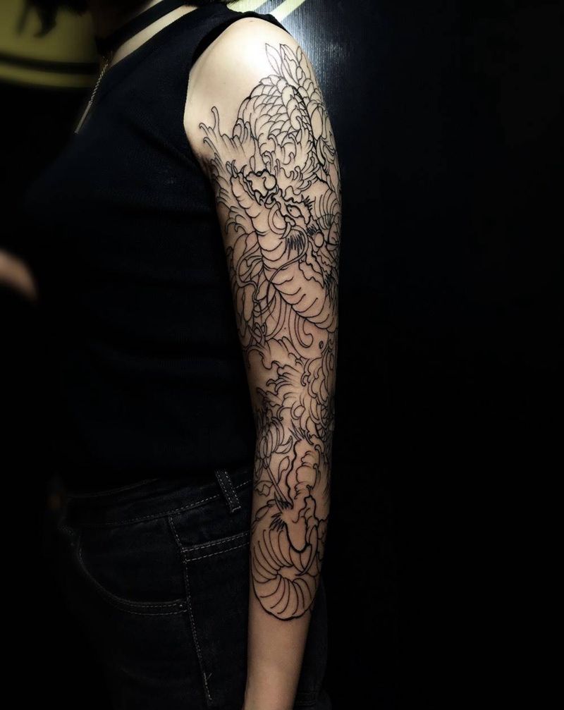 • T网红王老大花腿龙纹身图片_腿部新传统纹身图案