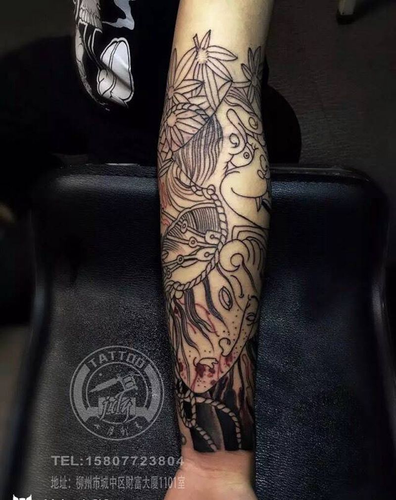 当前位置: 首页 >广西柳州市纹身店-福雕刺青纹身图案>未完作品纹身图片_手臂手部传统人物未完作品纹身图案