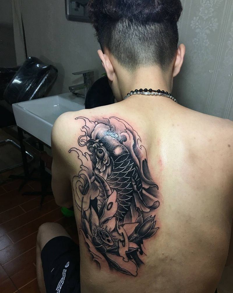 当前位置: 首页 >广西柳州市纹身店-如梦令刺青文化纹身图案>鲤鱼纹身图片_成品背部传统动物纹身图案