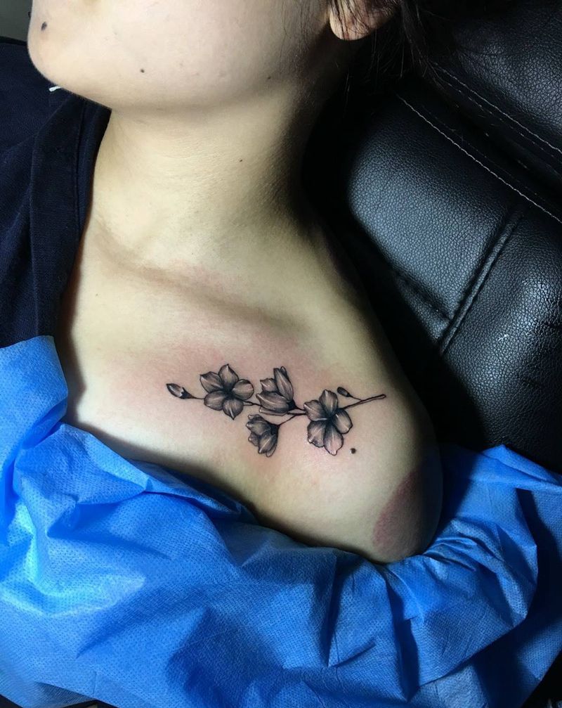 小花纹身图片_锁骨小英文植物清新成品纹身图案