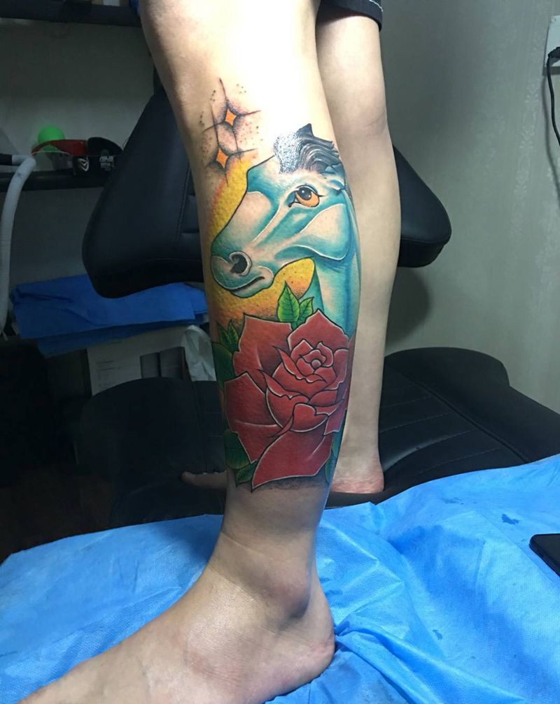 当前位置: 首页 >广西柳州市纹身店-如梦令刺青文化纹身图案>玫瑰花马纹身图片_成品脚部欧美植物动物纹身图案