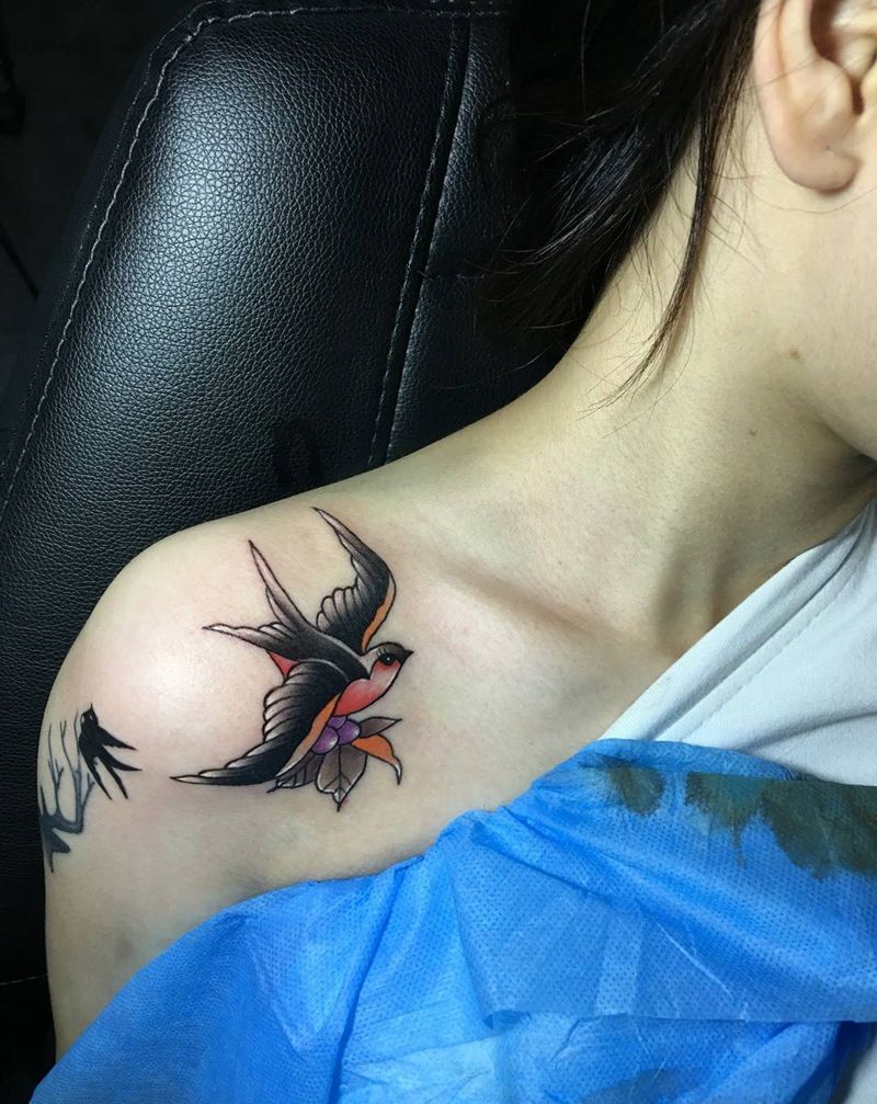 燕子纹身图片_肩部锁骨成品欧美动物纹身图案