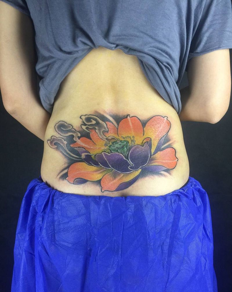 • 时尚性感的腹部莲花纹身图案