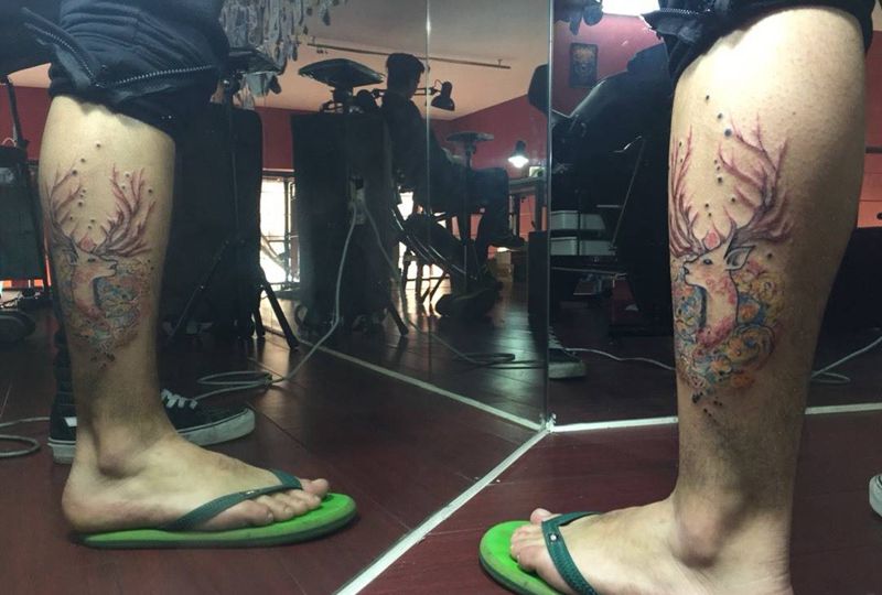 当前位置: 首页 >广西柳州市纹身店-西单刺青纹身图案>彩色鹿角纹身图片_腿部动物成品纹身图案