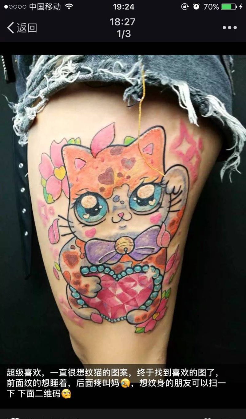 当前位置: 首页 >广西柳州市纹身店-西单刺青纹身图案>粉系 招财猫纹身图片