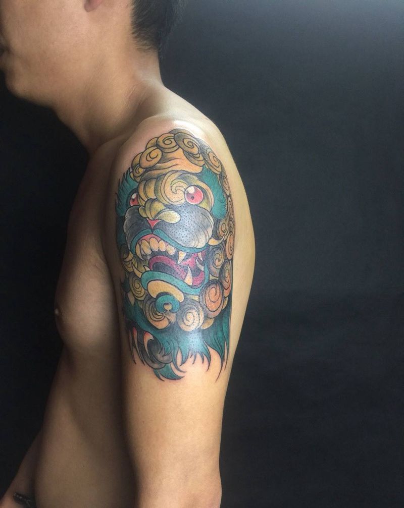 当前位置: 首页 >广西柳州市纹身店-西单刺青纹身图案>唐狮盖图纹身图片