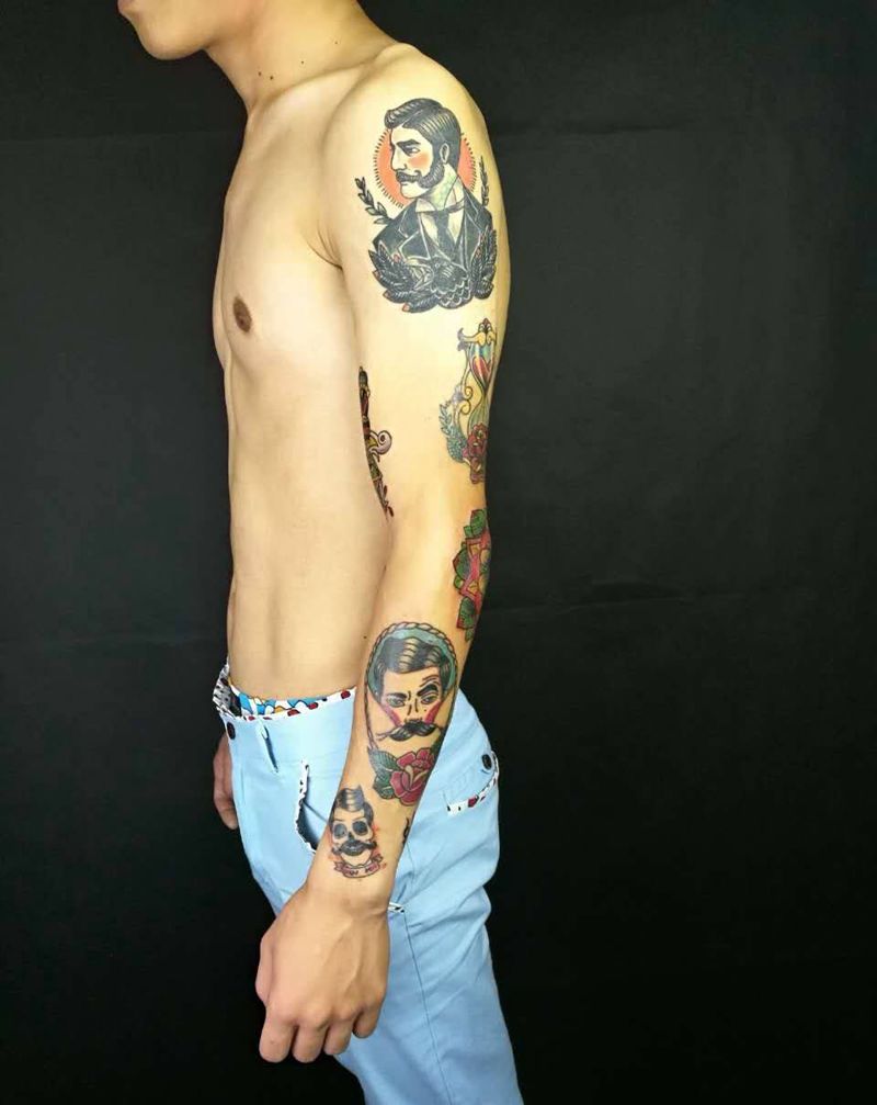 当前位置: 首页 >广西柳州市纹身店-西单刺青纹身图案>斯姑 花臂纹身图片_手臂欧美成品纹身图案