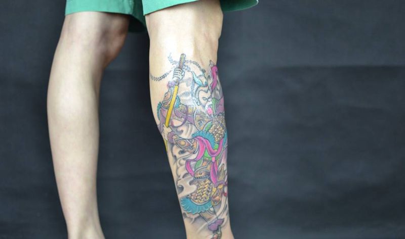 • T网红王老大花腿龙纹身图片_腿部新传统纹身图案