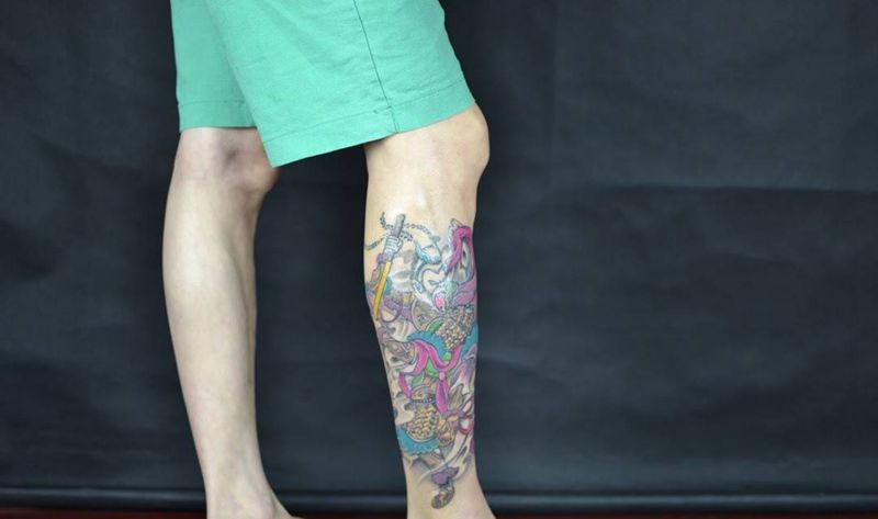 • T网红王老大花腿龙纹身图片_腿部新传统纹身图案