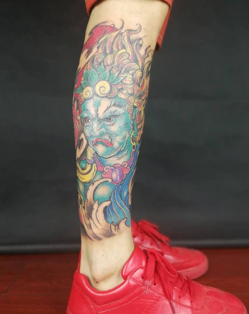 • T网红王老大花腿龙纹身图片_腿部新传统纹身图案
