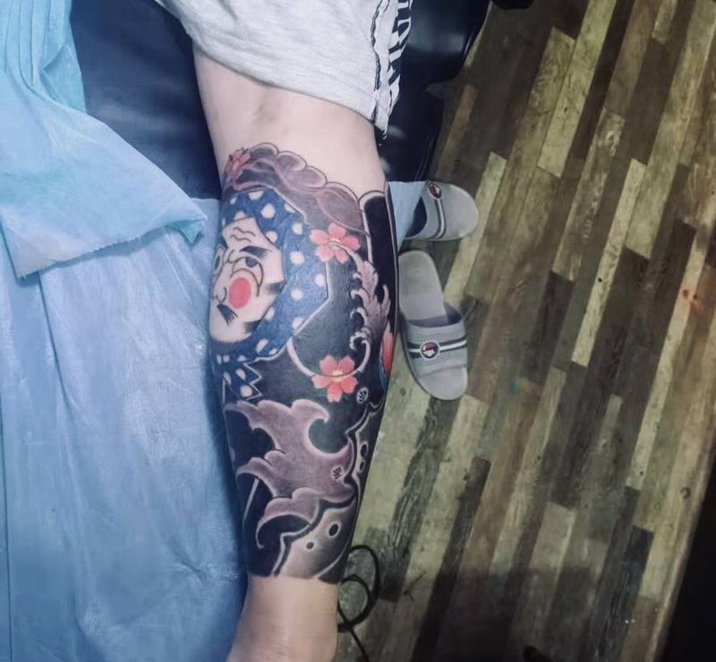 啊多福遮盖旧图纹身图片_腿部老传统纹身图案