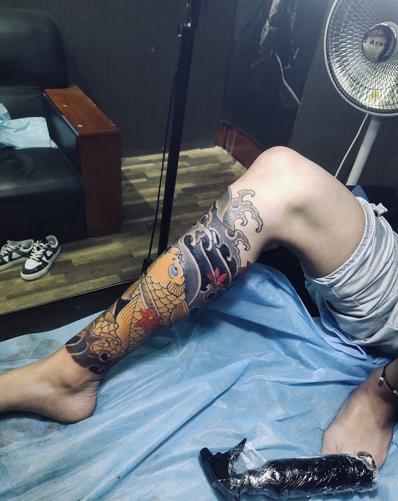 当前位置: 首页 >广西柳州市纹身店-念刺青工作室纹身图案>富贵鲤鱼纹身图片_腿部老传统鲤鱼纹身图案
