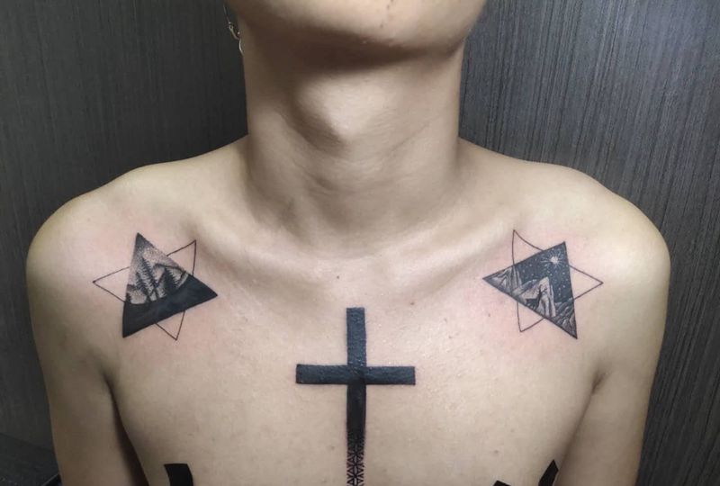 意境小图纹身图片_胸部纹身图案