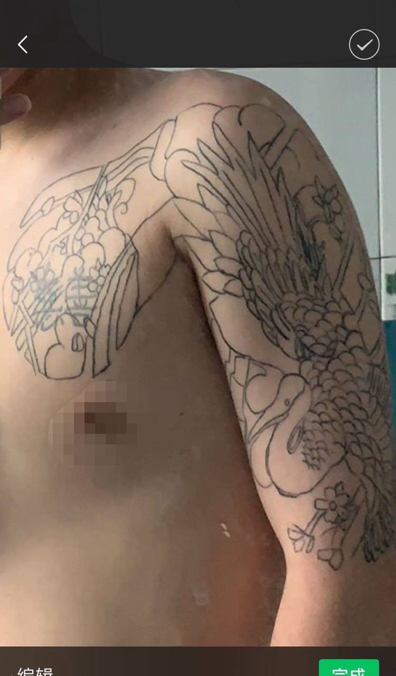 当前位置: 首页 >广西柳州市纹身店-念刺青工作室纹身图案>半甲遮盖修改纹身图片_手臂胸部纹身图案