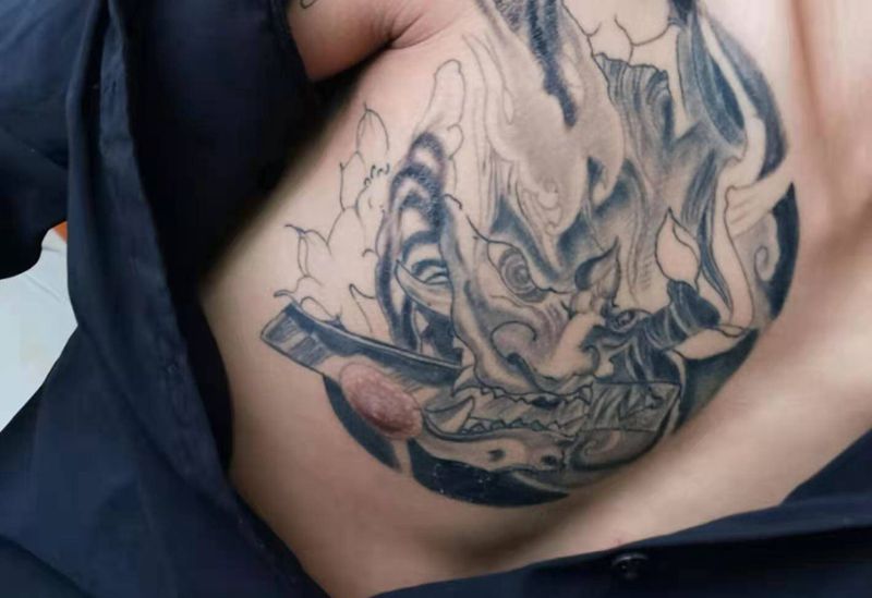 黑灰满背纹身图案