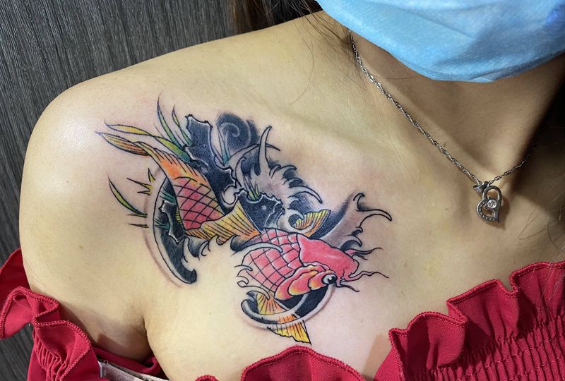 当前位置: 首页 >广西柳州市纹身店-念刺青工作室纹身图案>鲤鱼纹身图片_新传统纹身图案