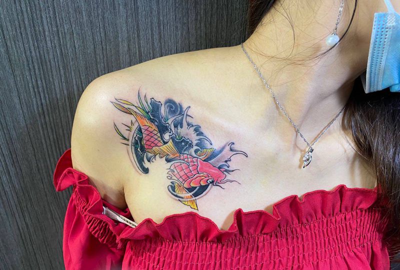 当前位置: 首页 >广西柳州市纹身店-念刺青工作室纹身图案>鲤鱼纹身图片_新传统纹身图案