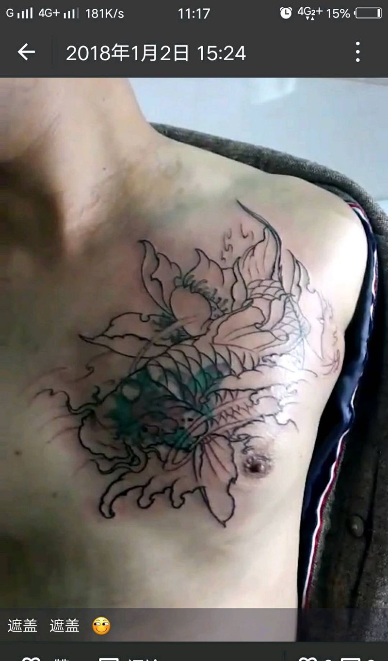 当前位置: 首页 >广西柳州市纹身店-念刺青工作室纹身图案>鲤鱼遮盖纹身图片