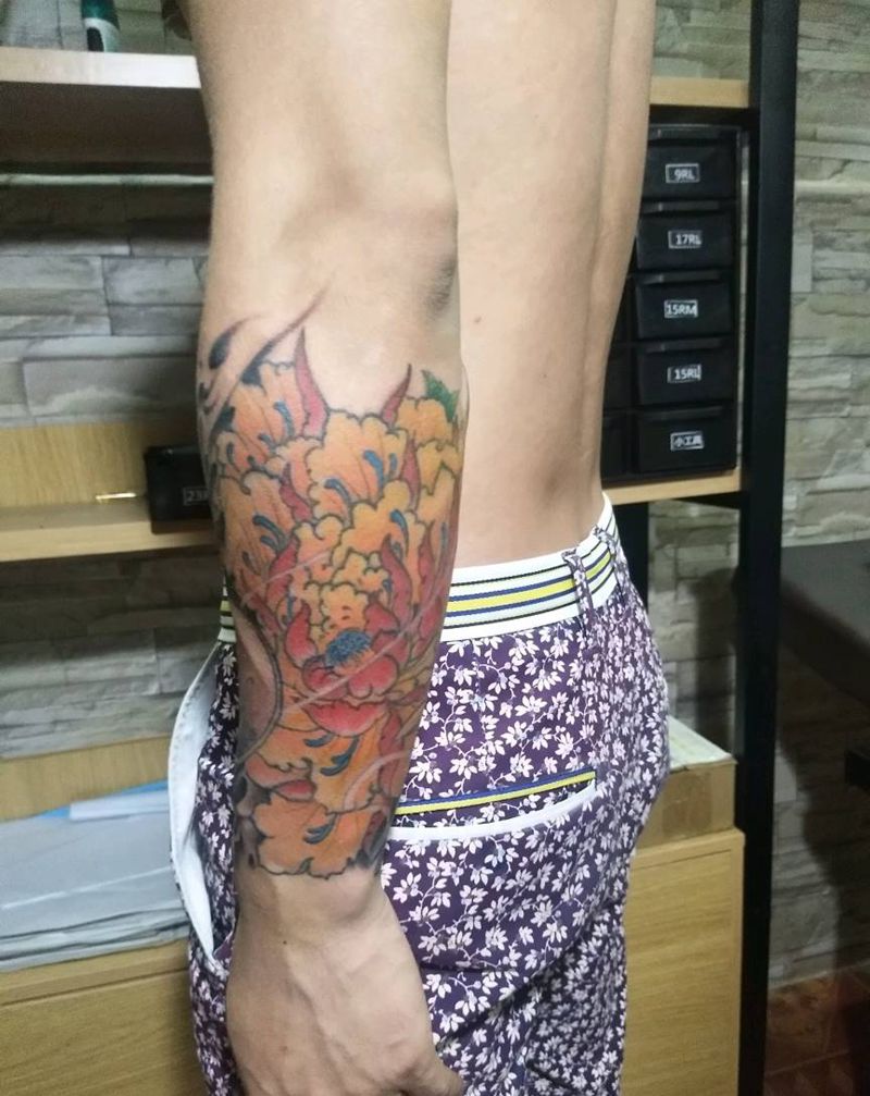 当前位置: 首页 >广西柳州市纹身店-念刺青工作室纹身图案>艺妓牡丹包小臂纹身图片
