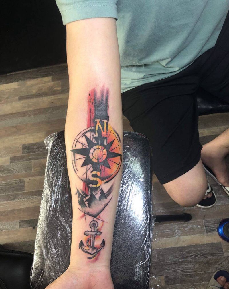 小臂指南针 船錨纹身图片_手臂纹身图案