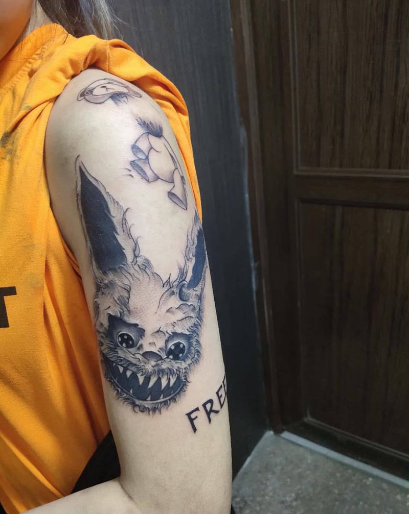 当前位置: 首页 >广西柳州市纹身店-念刺青工作室纹身图案>暗黑兔子纹身图片_手臂暗黑纹身图案