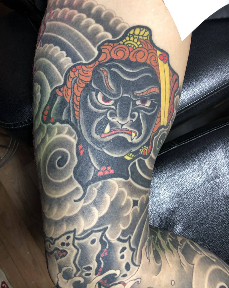 • T网红王老大花腿龙纹身图片_腿部新传统纹身图案