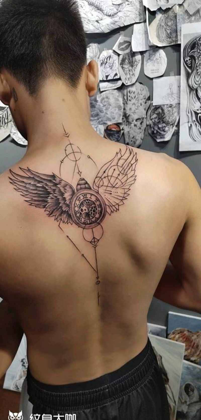 当前位置: 首页 >广西柳州市纹身店-念刺青工作室纹身图案>几何翅膀纹身图片_背部纹身图案