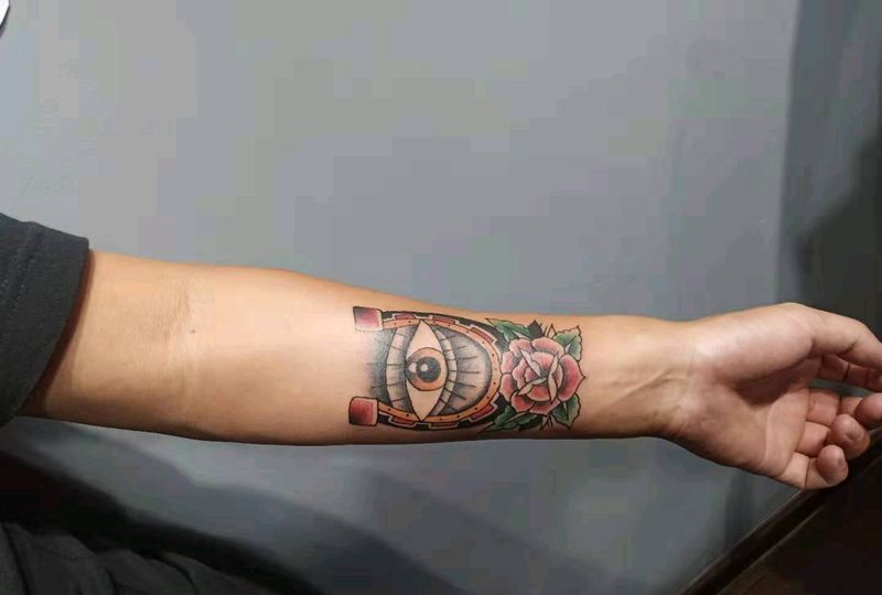 • 手背潮流时尚的玫瑰花眼睛纹身图案