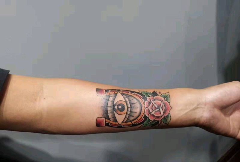 • 手背潮流时尚的玫瑰花眼睛纹身图案