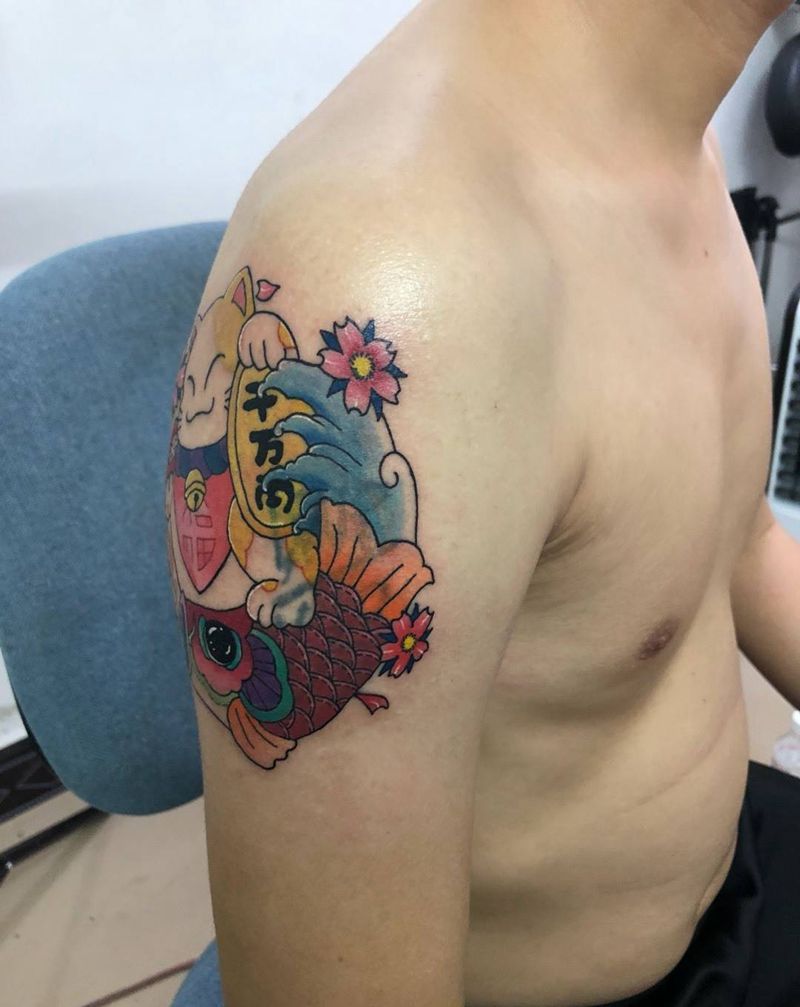 当前位置: 首页 >广西南宁市纹身店-轩铭刺青纹身工作室纹身图案>半遮盖招财猫纹身图片